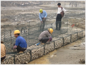 鍍鋅格賓網(wǎng)眼制造型式?五扭、五扭的鍍鋅石籠網(wǎng)也稱五扭網(wǎng)。石籠網(wǎng)高抗腐蝕、高強(qiáng)度低碳鋼絲或者包覆PVC的鋼絲,使用機(jī)械編織加工而成,能制成網(wǎng)墊,用于邊坡支護(hù)、基坑支護(hù)、山體巖面掛網(wǎng)噴漿、邊坡植生(綠化)、鐵路高速公路隔離護(hù)攔網(wǎng),它還能制成用于江河、堤壩及海塘的防沖刷保護(hù)及水庫(kù)、河流截流的網(wǎng)箱。格賓網(wǎng)新型的生態(tài)防護(hù)結(jié)構(gòu),是用機(jī)械將金屬絲編織成網(wǎng)箱結(jié)構(gòu)的金屬網(wǎng)。雙絞線網(wǎng)鍍鋅鋼絲網(wǎng)是一種耐腐蝕、耐磨損、高強(qiáng)度低碳重鍍鋅鋼絲、5% 鋁鋅合金鍍層鋼絲或聚氯乙烯鋼絲、雙絞線網(wǎng),即由相互纏繞的兩根鋼絲組成的網(wǎng)狀結(jié)構(gòu),用于河岸防護(hù),形成六角形扭曲網(wǎng)狀結(jié)構(gòu)。格賓網(wǎng)新型的生態(tài)防護(hù)結(jié)構(gòu),是用機(jī)械將金屬絲編織成網(wǎng)箱結(jié)構(gòu)的金屬網(wǎng)。雙絞線的長(zhǎng)度不得少于50毫米。保護(hù)涂層免受損傷。鍍鋅石籠網(wǎng)布置有三種基本類型: 網(wǎng)箱、網(wǎng)墊和網(wǎng)袋。布局充滿了鵝卵石或小圓石,有時(shí)也與其他材料,如廢棄的混凝土塊,磚填料。鍍鋅石籠網(wǎng)不應(yīng)由10% 的鋁鋅合金鋼絲制成,使用未指定的其他材料。