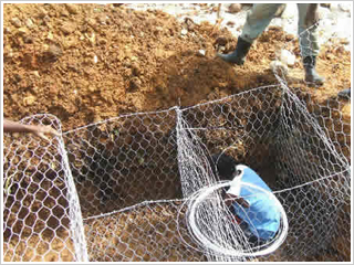 格賓石籠技術(shù)是指將抗腐耐磨高強(qiáng)的低碳高鍍鋅鋼絲或鋁鋅合金鋼絲(或同質(zhì)包塑鋼絲) ,編織成雙絞、六邊形網(wǎng)目的網(wǎng)片,根據(jù)工程設(shè)計(jì)要求組裝成蜂巢網(wǎng)箱,并裝入塊石等填充料的一項(xiàng)工程技術(shù),這種蜂巢型結(jié)構(gòu),能符合力學(xué)的原理,是一個(gè)同性質(zhì)的巨大塊狀結(jié)構(gòu)體。